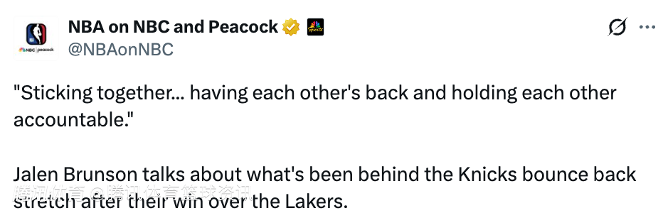 2026-02-02 11:10北京时间2月2日,NBA常规赛,尼克斯主场以112-100击败湖人,布伦森拿到12分7篮板13助攻,赛后他接受了媒体的采访。