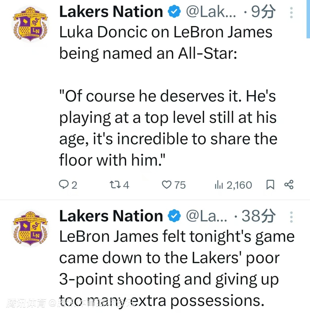 东契奇:詹姆斯配得上入选全明星 如此高龄仍保持顶级水准不可思议