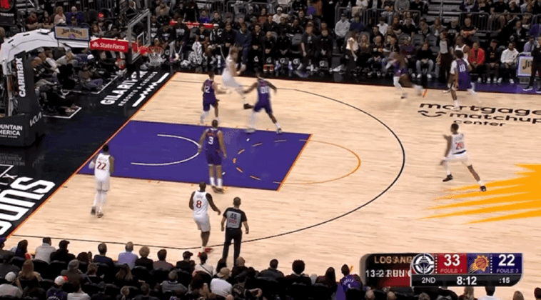 次节比赛开始,乔丹-米勒抛投打进,快船延续进攻高潮到15-2,双方分差来到双位数。狄龙急停跳投为太阳止损,阿伦三分命中,科林斯反手上篮,奥尼尔和狄龙连续飙进三分。太阳打进12-2的进攻高潮抹平分差,邓恩打进2+1,狄龙2罚1中,桑德斯基廷跳投,