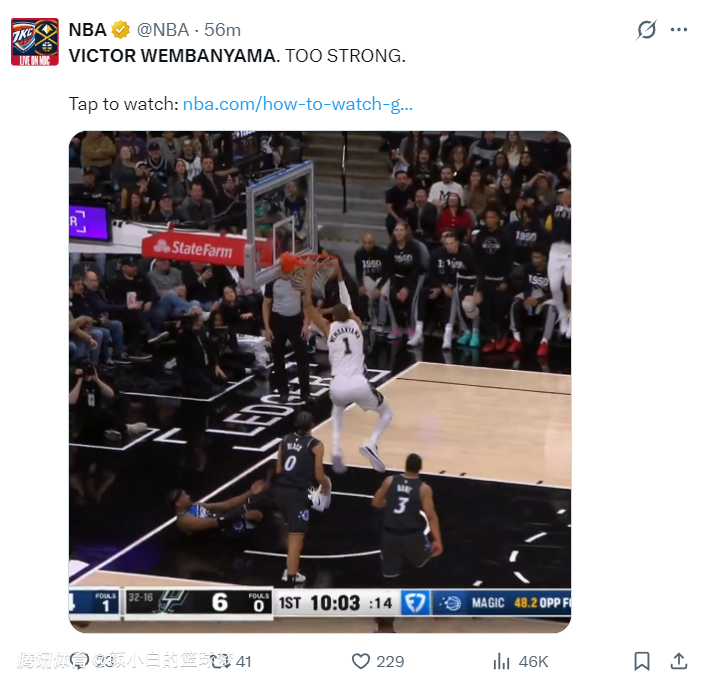 头撞篮板空接+追身火锅!文班亚马25+8+4断5帽统治攻防 外星人真猛