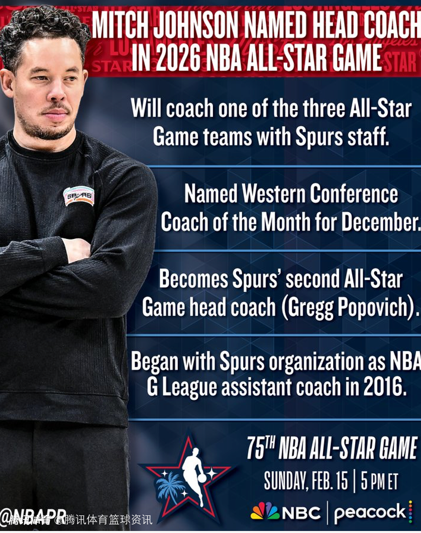 继波波维奇之后又一位!马刺主帅米奇-约翰逊确认获得全明星主帅资格