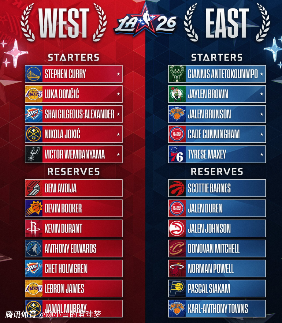 马刺重返西部第二!东西部全明星阵容/主帅全确定 快船升第九还暗助湖人
