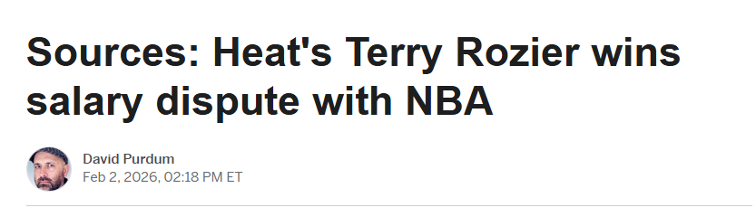 2026-02-03 04:30北京时间2月3日,据ESPN援引消息人士报道,在迈阿密热火队后卫特里-罗齐尔与NBA的薪资纠纷仲裁案中,仲裁员今日作出支持罗齐尔的裁决。该纠纷源于罗齐尔在联邦赌球调查中被提起公诉。