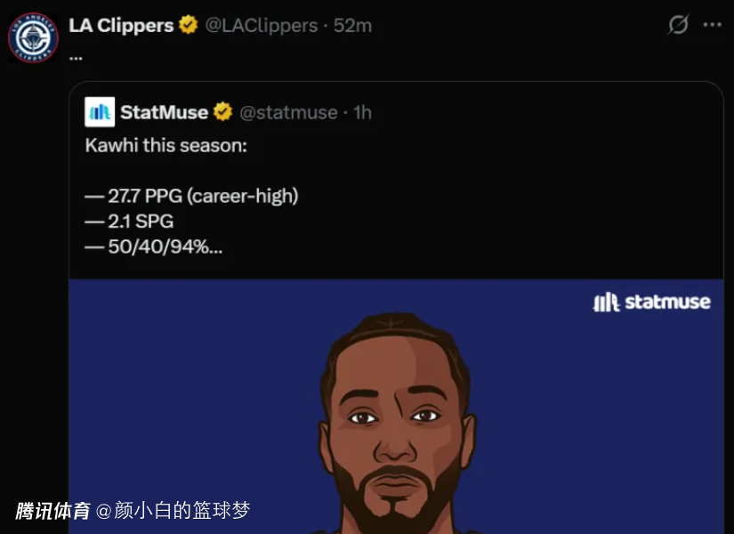 此前快船官方都用了三个...省略号来为小卡鸣不平,毕竟全明星替补是教练员选出来的,这说明小卡不受待见。