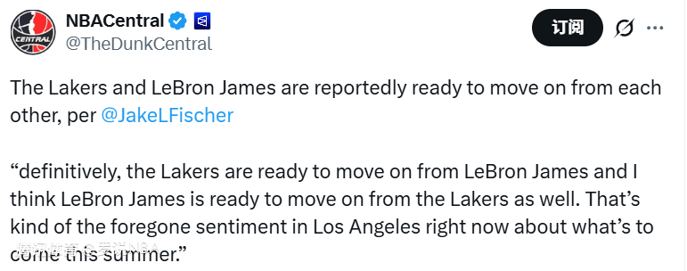 2026-02-03 07:20北京时间2月3日,据名记Fischer报道,湖人已经准备好与勒布朗-詹姆斯分道扬镳,詹姆斯也准备好离开湖人队了。这几乎是目前洛杉矶对于今年夏天即将发生的事情的普遍看法。