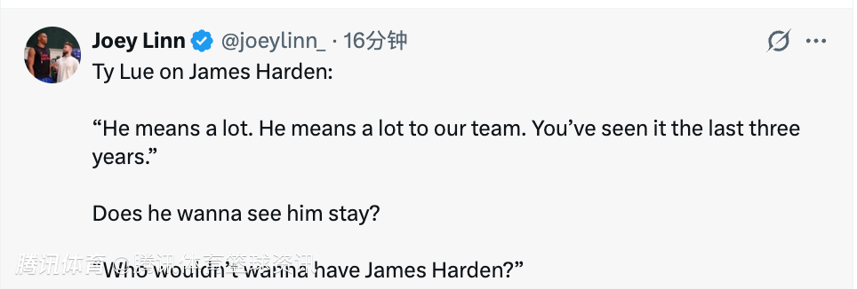 卢:抱歉不能对哈登交易流言发表评论 他对我们真的很重要