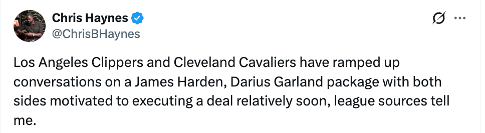快船与骑士就涉及哈登加兰互换方案加紧谈判 双方有动力在短期内完成交易