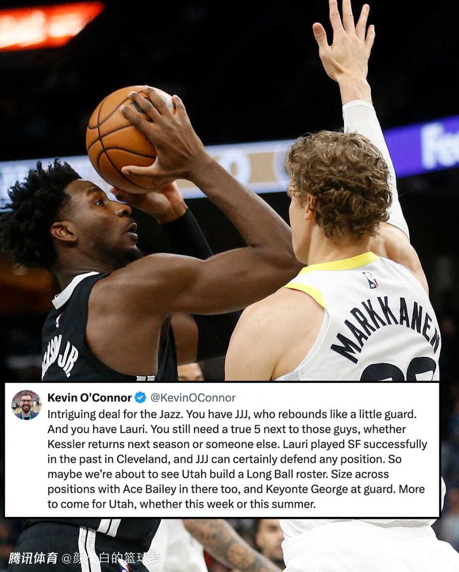 凯文-奥康纳的意思很明显了努尔基奇肯定不是爵士五号位的答案,凯斯勒今夏面临续约的问题,在有了马卡、小贾伦后爵士很难给凯斯勒高薪所以他不确定凯斯勒下赛季能否继续在犹他打球,但小贾伦+乔治+马尔卡宁的三巨头肯定是有搞头的。
