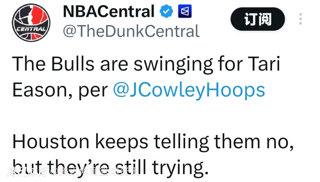 2026-02-04 08:30北京时间2月4日,据芝加哥记者Joe Cowley报道,公牛正全力追求火箭球员伊森。火箭方面已多次拒绝,但公牛仍在持续尝试。据称,公牛曾向火箭提议用科比-怀特换取伊森,但直接被拒绝。