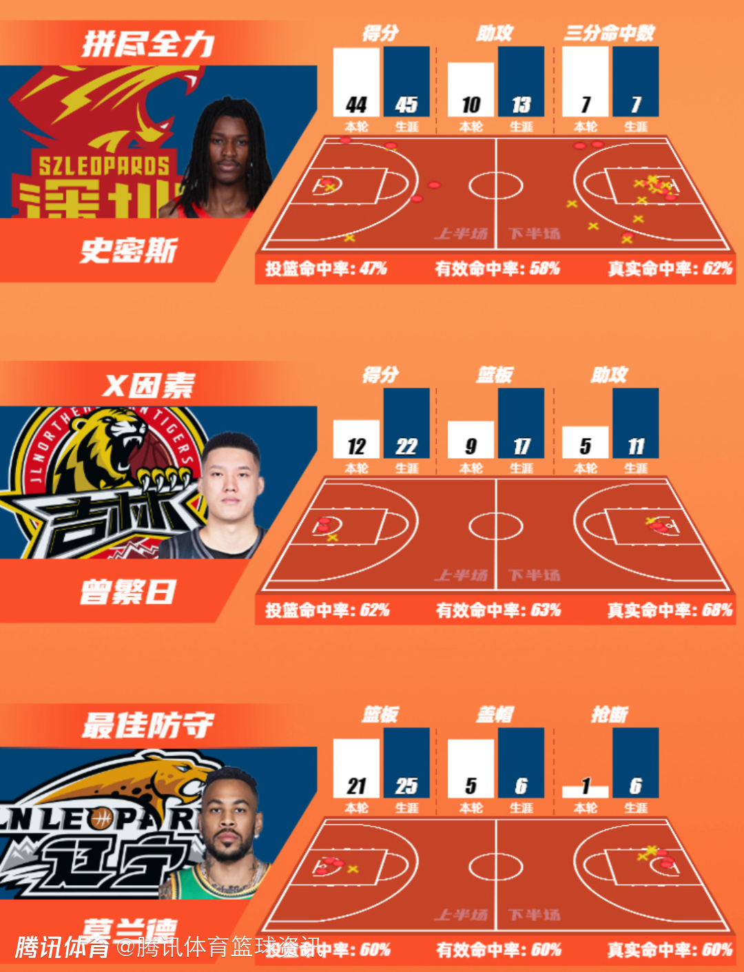 深圳新世纪烈豹篮球俱乐部球员史密斯以单场44分的数据领衔得分榜;