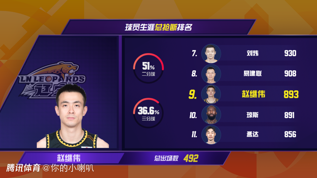 辽宁本钢95-82战胜江苏肯帝亚的比赛中,辽宁本钢球员赵继伟上场32分38秒,得到16分、7个篮板、8次助攻和3次抢断,CBA生涯总抢断数达到893次,超越多米尼克·琼斯(891次),升至CBA历史总抢断榜第9位。辽宁本钢国际球员埃里克·莫兰德CBA生涯总盖帽数达到406次,超越李慕豪(404次),升至CBA历史总盖帽榜第23位。