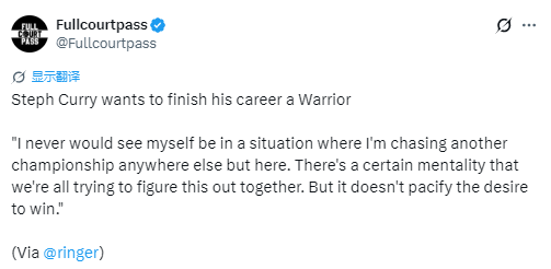 库里在接受采访时表示:“我从未想过,自己会在除这里之外的任何地方追逐另一座总冠军奖杯。我们所有人都在共同摸索一种特定的比赛心态,但这并不会平息我对胜利的渴望。”