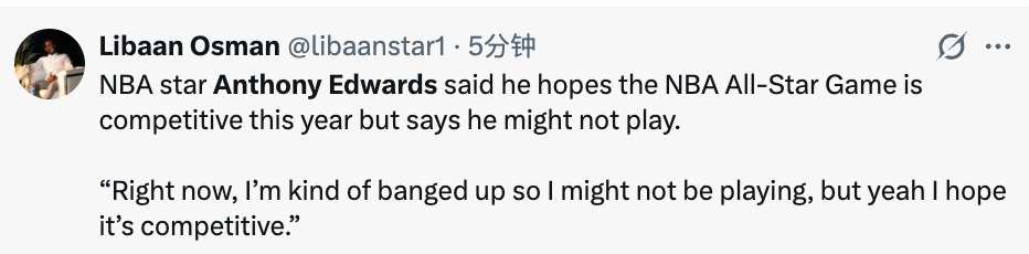 2026-02-05 12:00北京时间2月5日,NBA常规赛,森林狼以128-126击败猛龙,此役爱德华兹拿到30分8篮板5助攻,赛后他接受了媒体的采访。