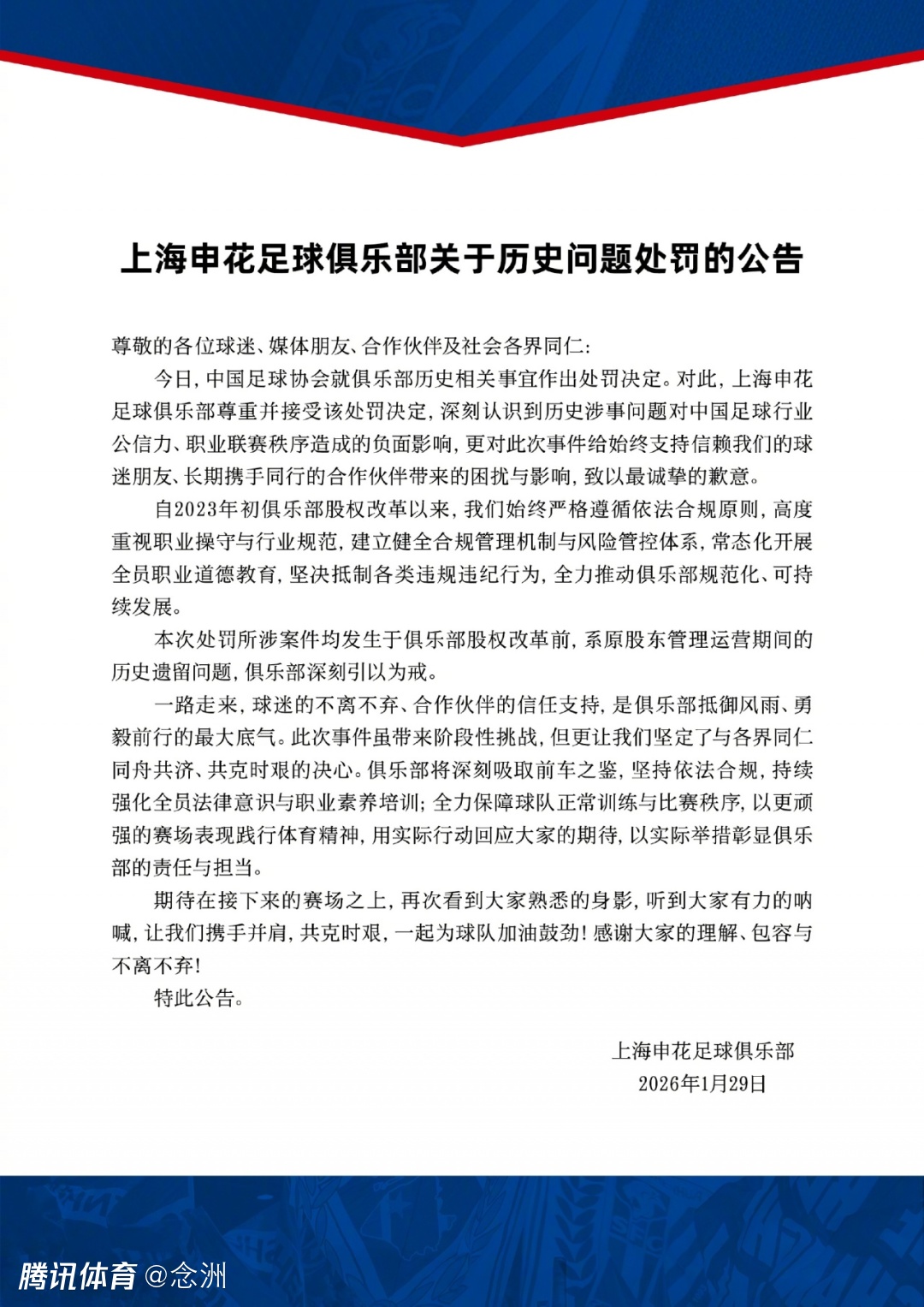 申花津门虎为何被罚10分?有前科 涉案金额大+社会影响恶劣 顶格处罚