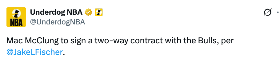 重返芝加哥!公牛和麦克朗签下一份双向合同 本季效力G联盟场均25.4分