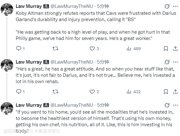 奥尔特曼强力驳斥了有关骑士队对加兰的耐用性与伤病预防工作感到不满的报道,直言这些说法纯属无稽之谈。“他正逐步找回顶级竞技状态,在费城那场比赛受伤之前,我们已经合作了七年,他一直是个极其刻苦的球员。”