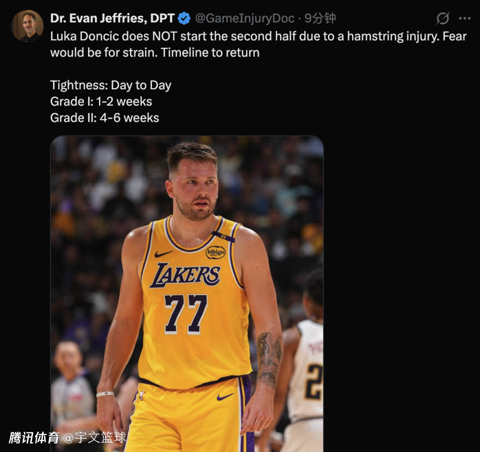 湖人官宣东契奇伤退!无对抗情况下左腿酸痛 医学专家:最糟糕伤缺4-6周