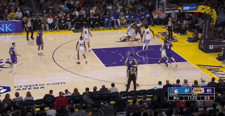 76人在最后时刻带来顽强的进攻表现,以一波8-0的进攻高潮迫近分差。里夫斯造成犯规2罚全中,现场球迷为他响起MVP的欢呼声。湖人关键时刻出现致命失误,埃奇库姆命中神奇三分,斯马特回头2罚1中,76人最后34.6秒落后4分。