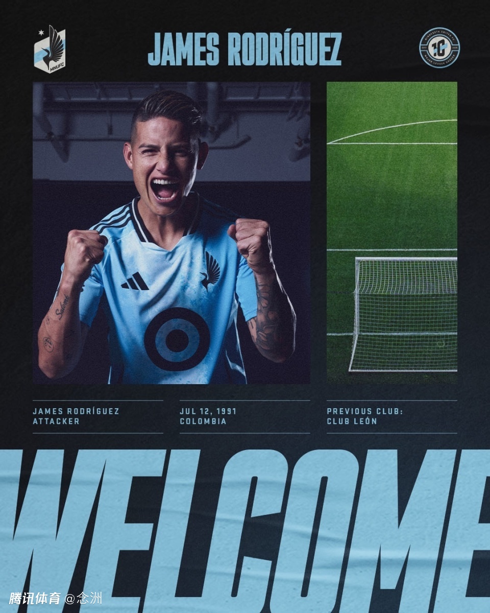 美职联球队明尼苏达联官方宣布,与34岁的哥伦比亚球星哈梅斯-罗德里格斯完成签约,球员自由身加盟,双方签约至2026年6月,同时俱乐部有与他续约至2026年年底的选项。