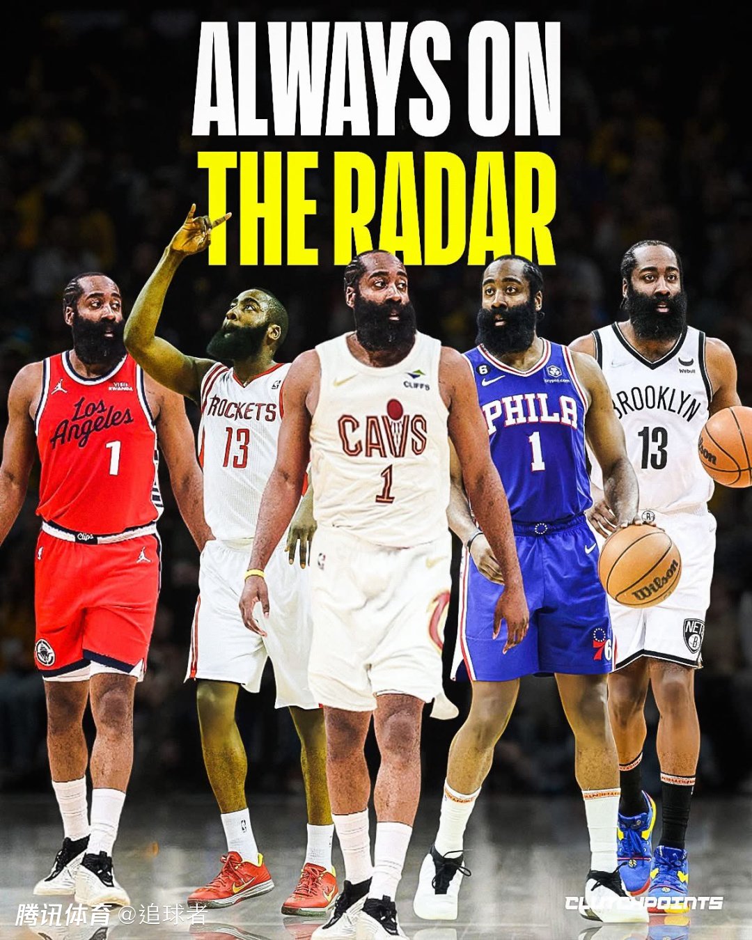 花钱买号!哈登确定身穿骑士1号球衣 曝他和米切尔已推动招募詹姆斯