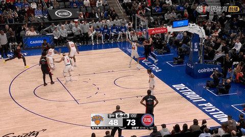 易边再战,尼克斯在第三节开局试图追分,第三节还剩11分34秒和11分04秒时布伦森接连命中急停和撤步跳投,将比分追至46-63。但从第三节还剩11分04秒到还剩7分06秒,尼克斯长达4分钟未能得分,活塞把比分从46-63扩大到48-73,期间斯图尔特在第三节还剩10分47秒时两罚全中,邓肯-罗宾逊在还剩10分14秒和9分08秒时先后命中两记三分,哈里斯也有投篮命中。
