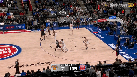 第四节还剩10分37秒时比分为64比91,随后到还剩1分57秒这8分40秒内,活塞打出25比9的攻击波,霍兰二世、拉尼尔和赫尔特先后得分,将领先优势从27分继续扩大到43分,把尼克斯彻底打崩。