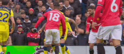 曼联首发阵容:31-拉门斯;5-马奎尔、23-肖、2-达洛特、6-马丁内斯、18-卡塞米罗、8-B费、19-姆伯莫、16-迪亚洛、37-梅努、10-库尼亚