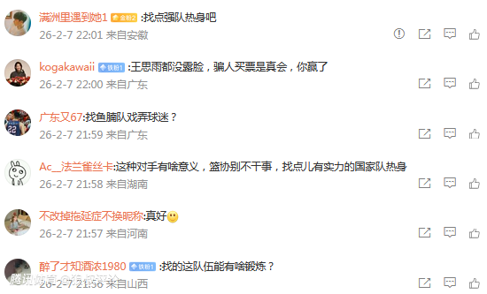 这种对手有啥意义,篮协别不干事,找点儿有实力的国家队热身。