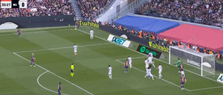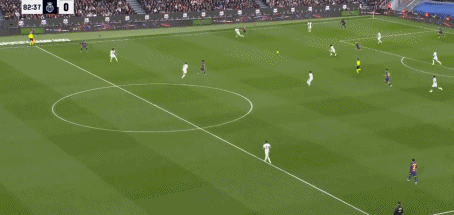 第83分钟,费尔明直塞,贝尔纳尔突入禁区扣过对手射门,球折射入网,3-0。