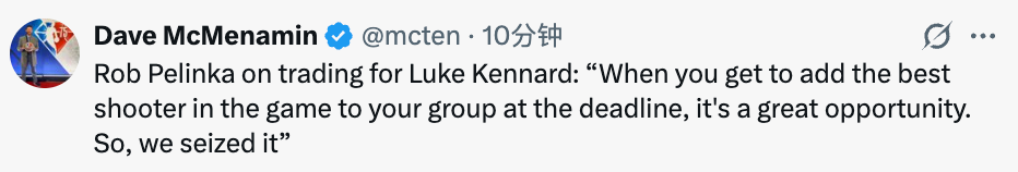 谈及交易截止日,佩林卡表示:“我想说我们是积极主动的。而积极主动的一种表现,就是拒绝那些可能不利于球队短期和长期未来的交易。”