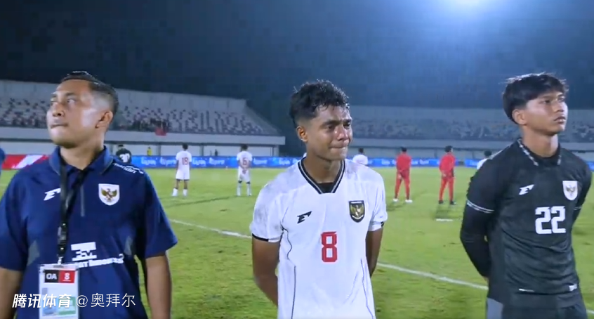 比赛结束之后,印尼U17球员、教练围在中圈面对看台。此时,多名印尼U17球员激动落泪,不断擦拭着泪水,而印尼主帅则面色铁青。