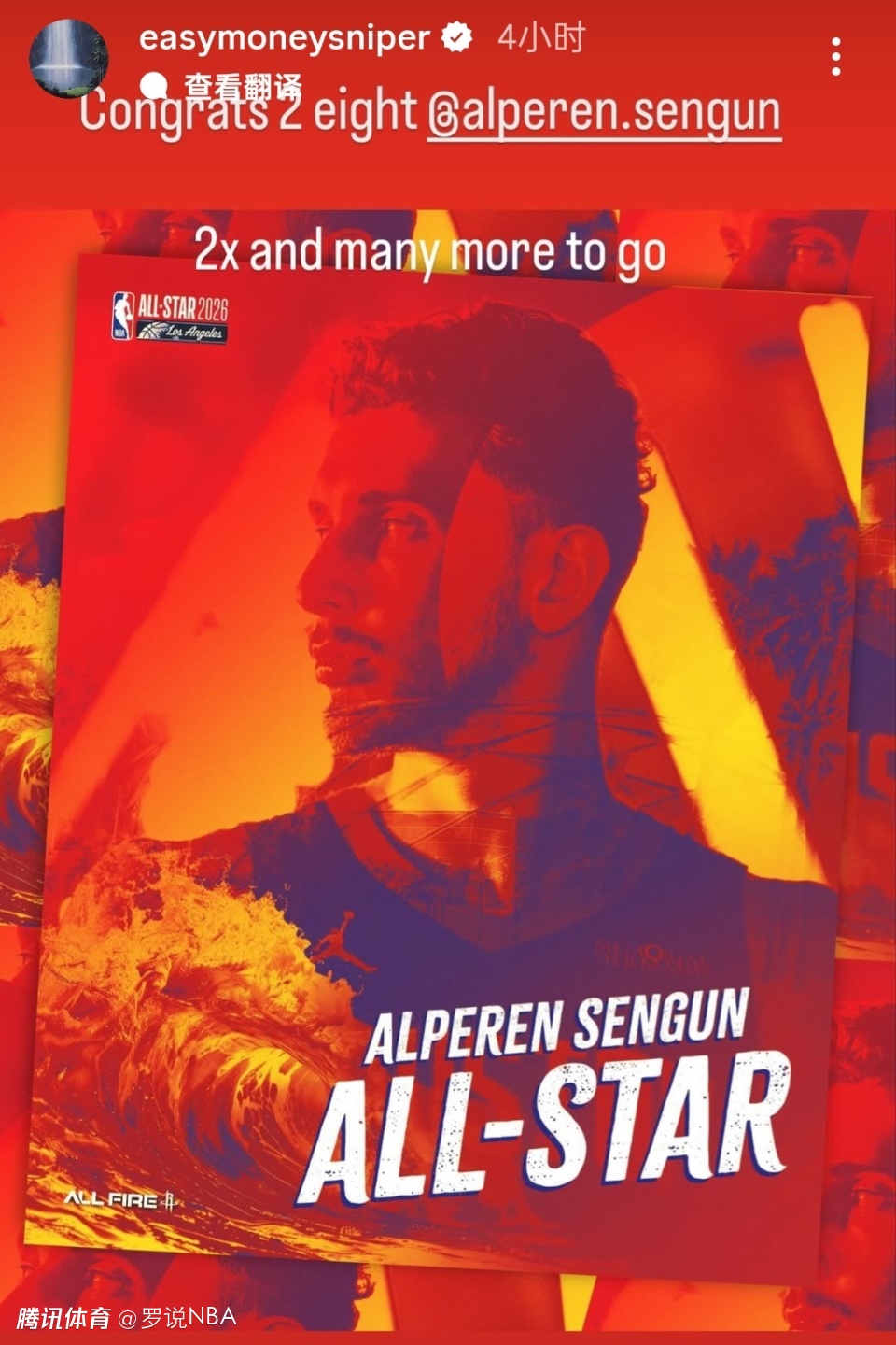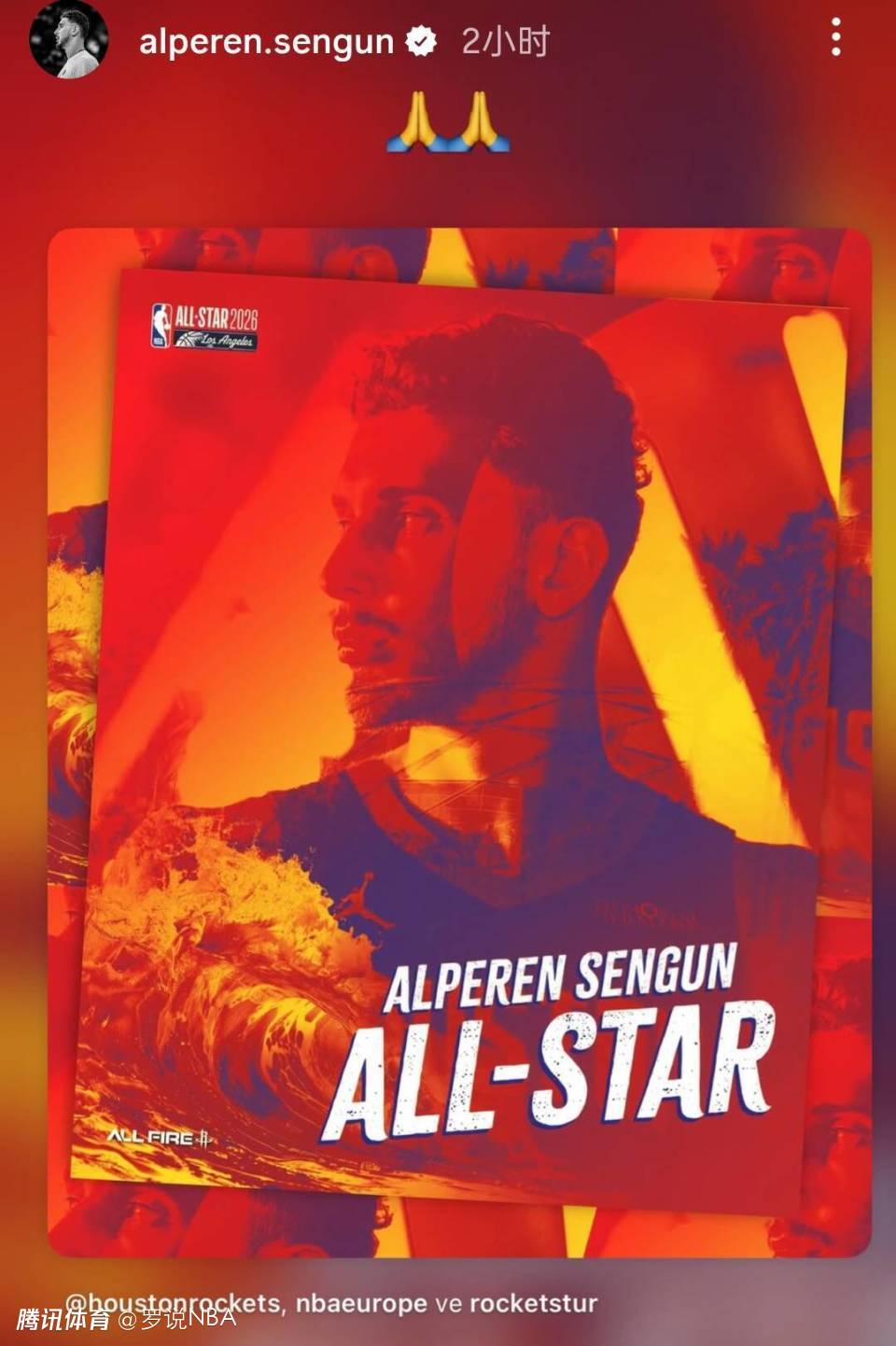 申京本人在IG社媒上晒出了入选全明星的海报,配上两个双手合十的表情,显然是对这次入选非常感恩。火箭队友杜兰特也晒出了同样的海报,配文写道:“祝贺28号申京,两次(入选全明星)了,未来还会有更多次!”