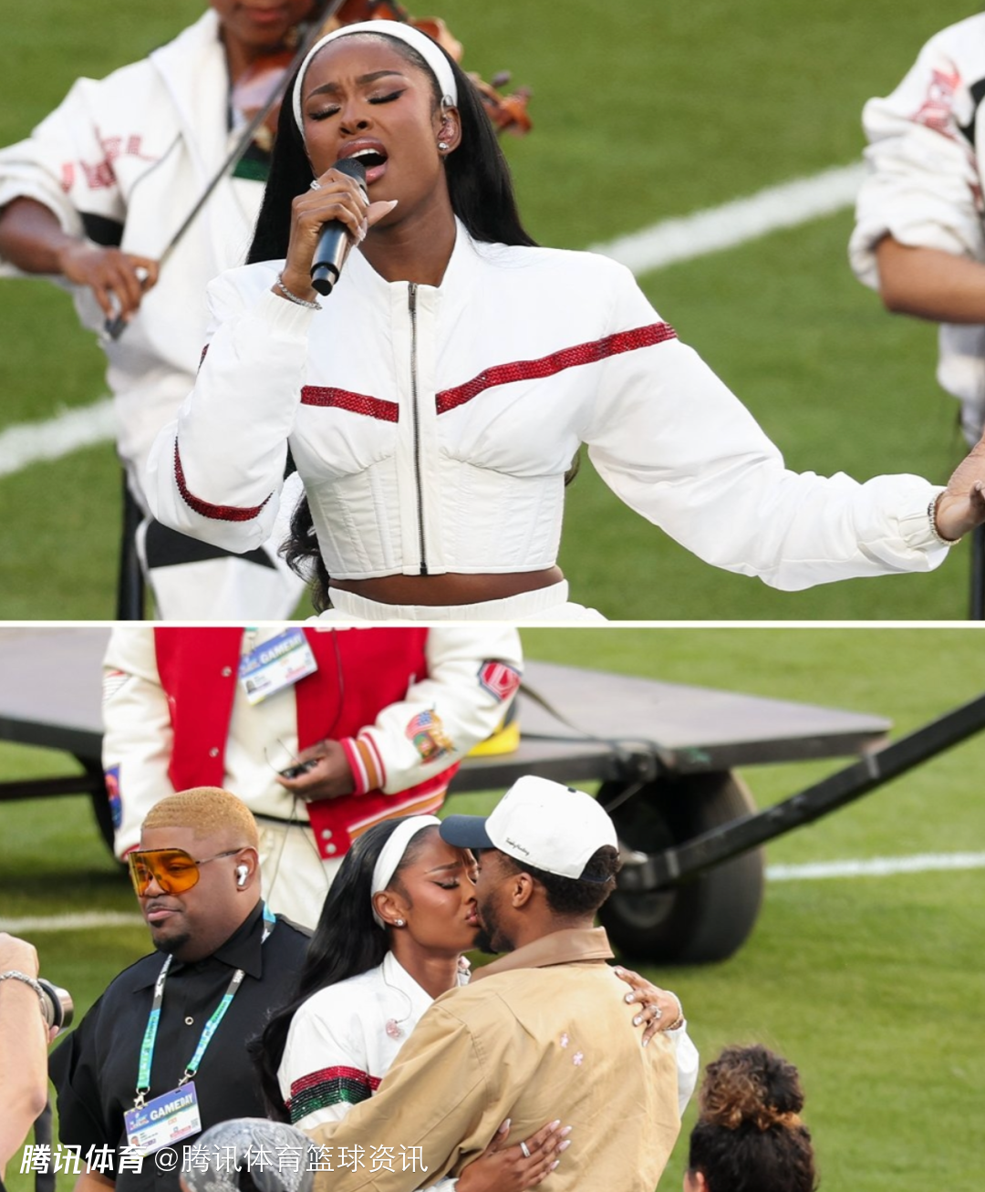 撒狗粮!未婚妻献唱超级碗 米切尔全程陪伴并送出亲吻
