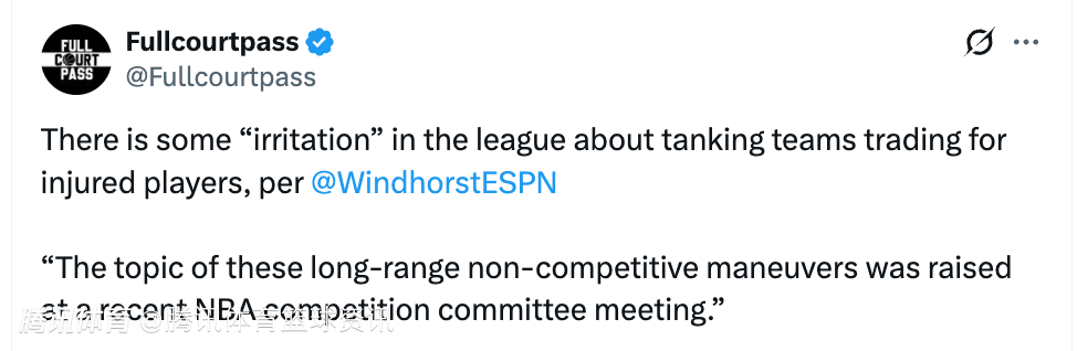 点谁呢?联盟内部对于摆烂球队交易受伤球员行为 存在一定程度的不满