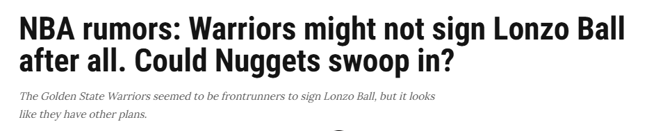 2026-02-10 07:40北京时间2月10日,据名记Stein报道,勇士在将斯宾塞的双向合同转为正式合同后,大概率不会签约朗佐-鲍尔。另据名记Haynes透露,目前有多支球队正在评估鲍尔的医疗报告,掘金也在其中。