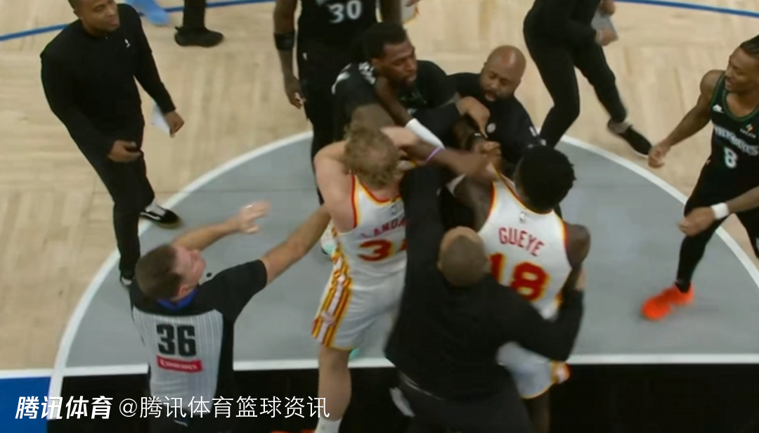 2026-02-10 11:10北京时间2月10日,NBA常规赛,老鹰对阵森林狼,比赛中,里德和古耶发生冲突,两人挥拳相向,随后被双双驱逐出场。