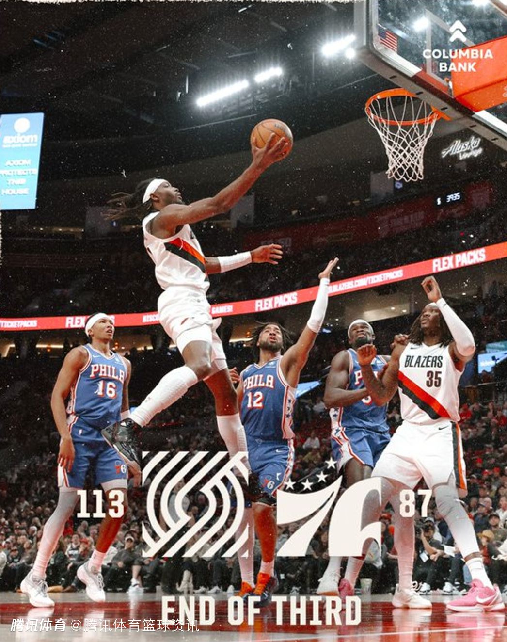 2026-02-10 13:20北京时间2月10日,NBA常规赛,开拓者主场对阵76人,第三节,开拓者单节轰出49-22,目前已经大幅领先76人。
