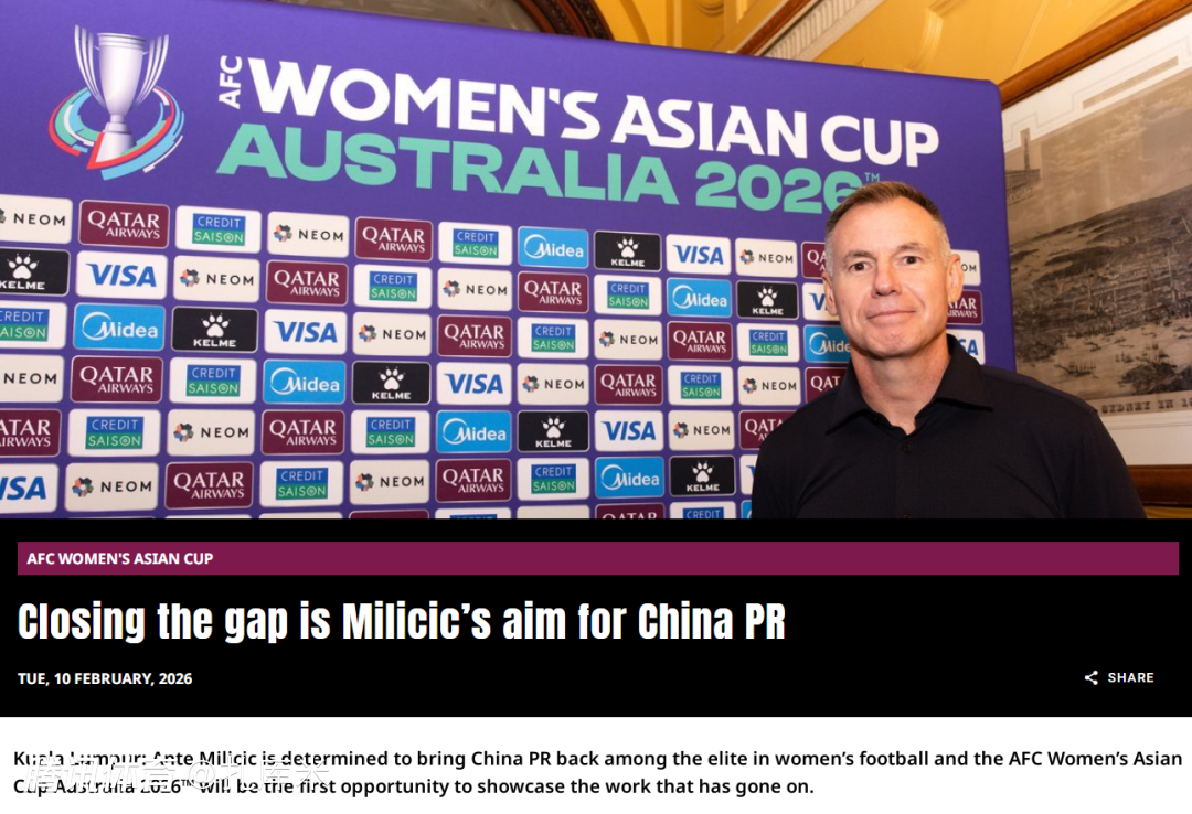 2026-02-10 14:00女足亚洲杯开打之前,中国女足主帅米利西奇接受了亚足联的专访,米利西奇表示,不仅希望在亚洲杯取得好成绩,更希望在世界杯展现实力,甚至未来拿到奥运会的资格。
