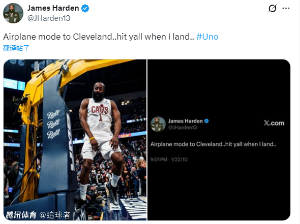 哈登赛后晒梗图庆祝,配文写道:飞行模式,前往克利夫兰,落地后联系你们。