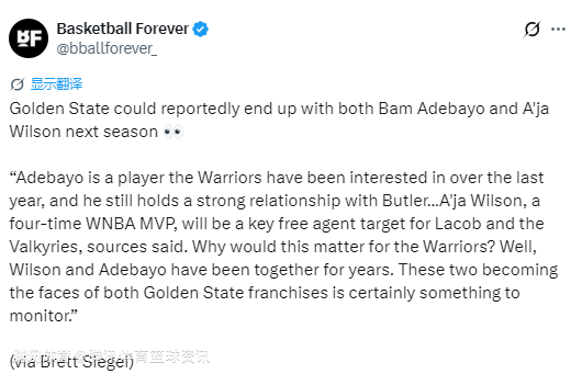 情侣档同赴金州?勇士有意阿德巴约 女武神瞄准阿贾-威尔逊