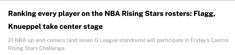 美媒公布新秀赛球员排名:杨瀚森位列第22 弗拉格居首克努佩尔第2