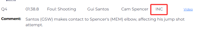 第一次漏判发生在比赛最后1分38秒,桑托斯防守时接触卡姆-斯潘塞肘部,影响其跳投动作,此为三分犯规漏判,后者本该获得三次罚球机会,这一次漏判是勇士获利。