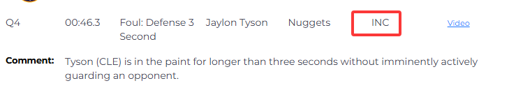 比赛最后2分钟仅仅出现一次错漏判,比赛还剩51秒,骑士球员泰森在油漆区内停留超过三秒,且未立即贴身防守对手,此为防守3秒违例,这一次漏判是掘金吃亏。