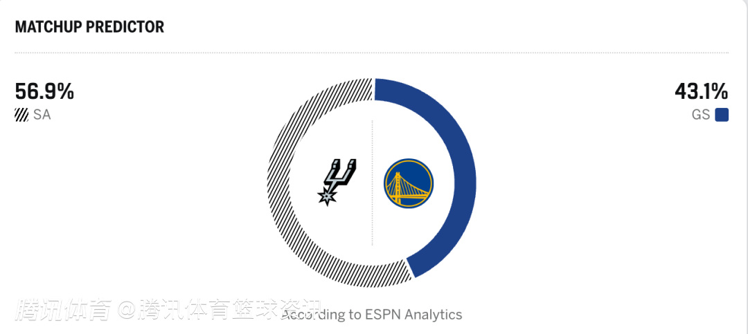 马刺56.9%,勇士43.1%
