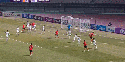 第16分钟,牟再现右路强行摆脱防守后低平球传中,金大元插上低射打偏。