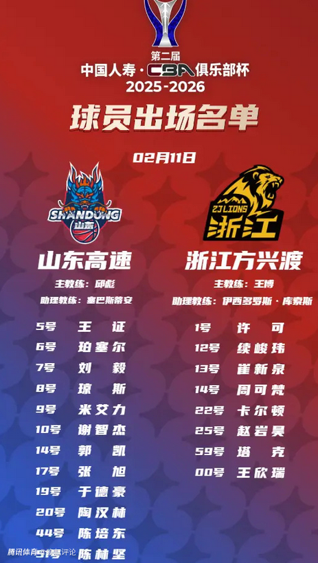 2026-02-11 19:40北京时间2月11日,CBA俱乐部杯季军争夺战,山东vs广厦大名单正式出炉,由于广厦面临大面积伤病,只有8人出战,山东新外援琼斯亮相,克里斯和鲍威尔同时缺席。