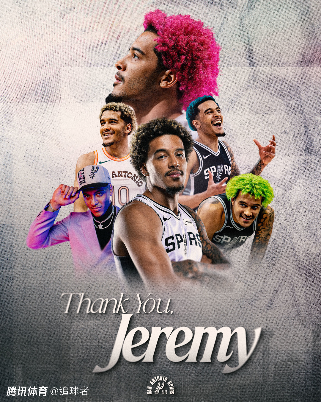 索汉已经正式被马刺裁掉,马刺官方晒海报向其谢别;在2022年选秀大会上,他在首轮第9顺位被马刺选中,为马刺效力四个赛季,索汉场均出战25.3分钟,能够10.4分5.6个篮板和2.6次助攻。