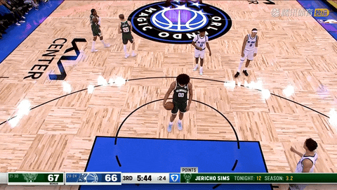 第1节还剩5分11秒时,库兹马通过两次罚球得分后,雄鹿在从还剩5分11秒到还剩1分41秒的3分半时间内再未得分,魔术把领先优势从2分扩大到4分,直到第1节还剩1分41秒时希姆斯通过罚球才再次为雄鹿得分。首节结束,雄鹿20:24落后。