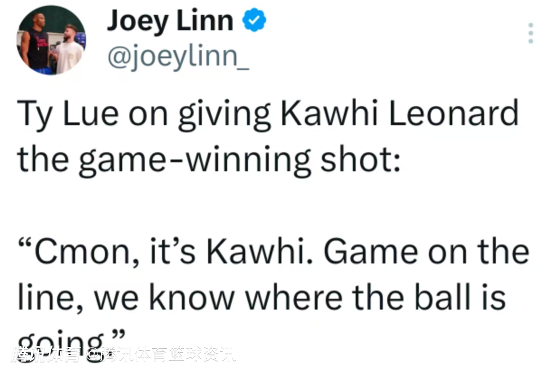 泰伦-卢盛赞莱昂纳德的表现:“是啊,毕竟这是小卡。比赛到了决胜时刻,我们都知道球会交到谁手里,而他今晚带我们拿下了胜利。他总能走到自己的得分点,巨星就该在这种时刻站出来。我们整场都坚持执行战术,对手整晚都对我们采取包夹,他也一直面对双人夹击,但他都做出了正确的处理。”