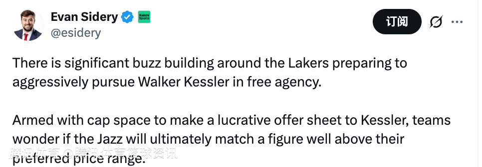 2026-02-13 00:20北京时间2月13日,据美记Evan Sidery报道,湖人正准备在自由球员市场上积极追求凯斯勒,相关传闻愈演愈烈。